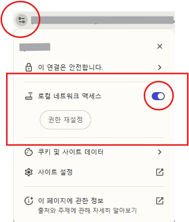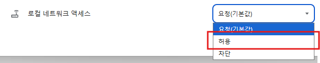 사이트 설정으로 이동 후 로컬 네트워크 액세스를 '허용'으로 변경합니다.